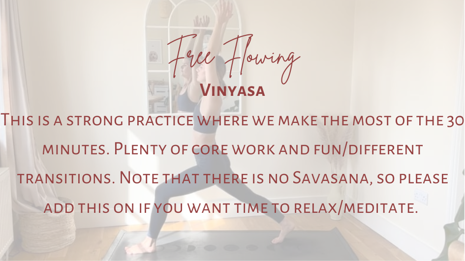 30 minutesAll Classes | 60 minutes | 10 minutes | Guided meditations | Strength | SlowVinyasa Flow hatha yin & meditation 60 minutes | 10 minutes | Guided meditations | Premium